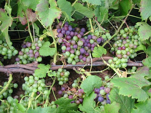 Merlot just beginning to ripen on divided canopy